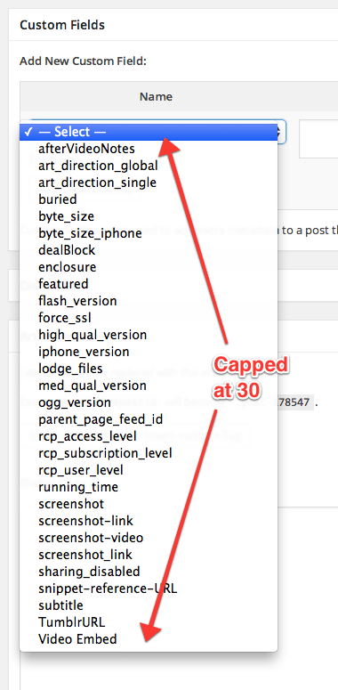 Otherwise, the dropdown for Custom Fields is capped at 30 (alphabetically).