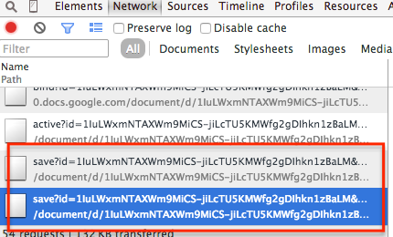 Needless to say, I wasn’t really happy with this solution. And I had seen something curious while getting my eye ulcer. At one point I’d clicked away from the “Sources” tab in the Chrome inspector and started looking at the “Network” tab. And I noticed these /save calls every time I typed something: