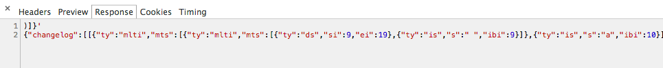 At this point, I figured my Chrome extension could be pretty dumb. All I had to do was intercept these “save” requests and store them somewhere. Later, I could figure out how to use them to rebuild the document. As long as someone had my extension installed from the very start of their editing, and never made any change in a browser without the extension, I should have enough to do everything Docs could do. (I reasoned that Docs gets exactly no more data about a document than what is sent to the server via these save calls; so those must be enough to render everything.)