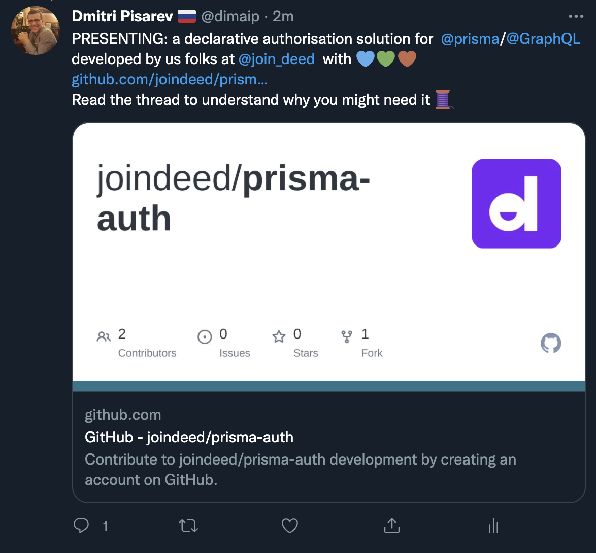 What?: A declarative authorisation middleware that operates on Prisma model level (and not on GraphQL resolver level).