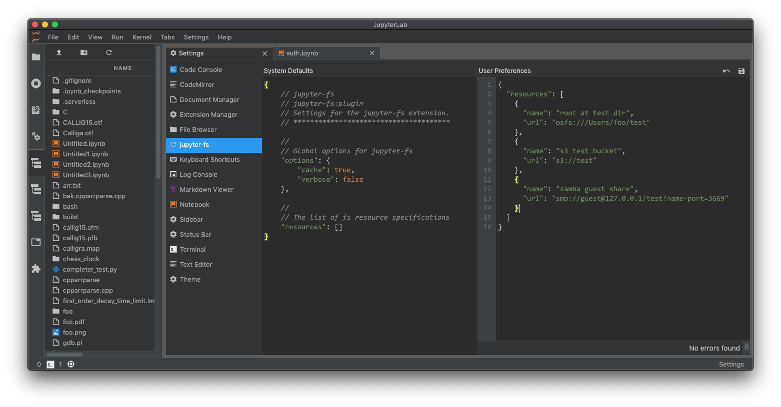 If you prefer to set up your filesystem resources in the server-side config, you can do so. For example, you can set up a local filesystem by adding the following to your jupyter_server_config.py