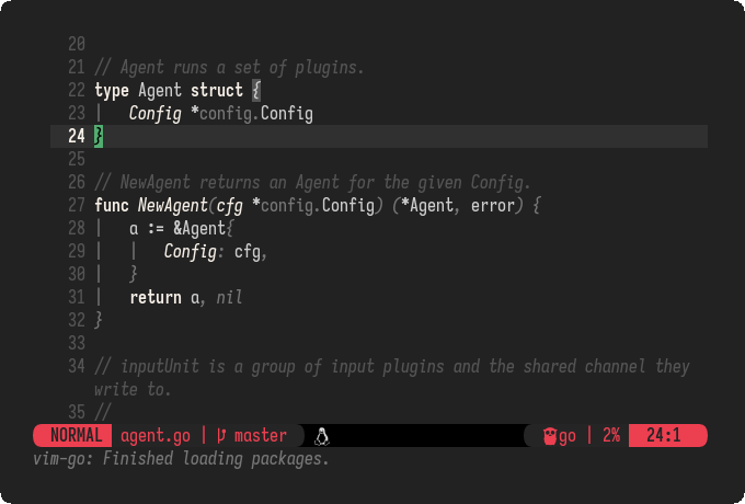 A dark monochrome grey colorscheme for vim with a simple accent color.