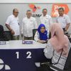 Direktur Utama Bank Muamalat Imam Teguh Saptono (kanan) saat berinteraksi dengan nasabah. Pembiayaan bagi hasil mudharabah tumbuh 42,9 persen secara tahunan (yoy) dari Rp 379,9 miliar per Desember 2024 menjadi Rp 543,1 miliar pada akhir Desember 2025.