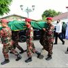 Setelah itu, Jokowi berpamitan dengan istri almarhum, kemudian turut mengantarkan jenazah keluar masjid menuju mobil jenazah.