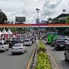 Antrean berfoto di Sky Deck Halte Transjakarta Bundaran Hotel Indonesia (HI) Jakarta Pusat.Selama acara berlangsung, kendaraan pribadi dilarang melintas di ruas Jalan MH Thamrin hingga Sudirman demi menjaga kenyamanan dan keamanan pengunjung.