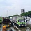 Genangan air di area tersebut mencapai ketinggian 50 sentimeter, menyebabkan kendaraan mobil pribadi dan sepeda motor yang nekat melintas berpotensi mogok.