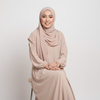 - Buat foto ini jadi foto formal profesional ukuran 3x4. Gunakan kebaya modern warna netral dengan latar putih polos dan pencahayaan lembut.
