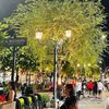Selain itu, lampu di taman sepanjang jembatan juga makin mempercantik pemandangan. Hingga gapura gunungan yang diterangi lampu berwarna merah, membuatnya makin megah.