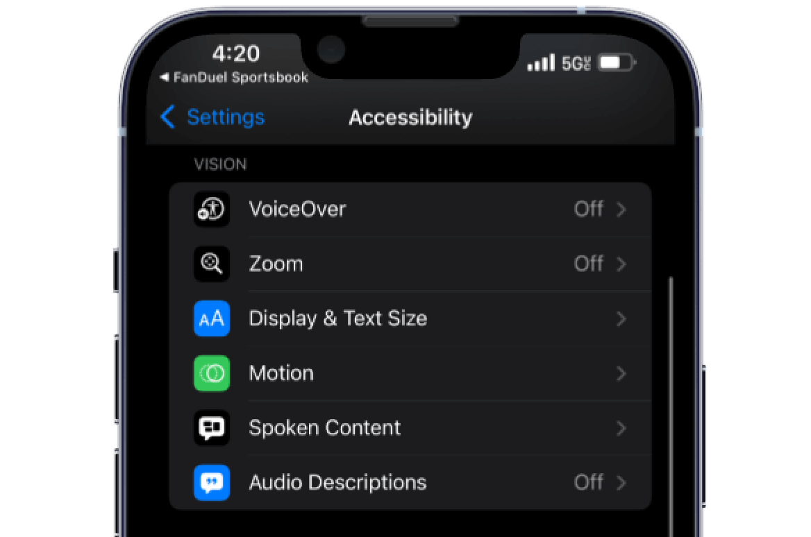 We’re always working to improve accessibility. That means designing with assistive technologies in mind, following Web Content Accessibility Guidelines (WCAG), and listening to feedback. Our goal is to make FanDuel easy to use for everyone.