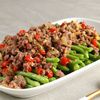 Kering tempe pedas manis dimasak bersama bumbu cabai merah besar, bawang putih, daun salam, asam jawa, lengkuas, kecap manis, dan garam.