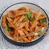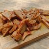 Kudapan ini terbuat dari adonan bakso yang digoreng hingga renyah, lalu diaduk dengan bumbu cabai kering.
