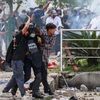 Seorang reporter AFP menyebutkan, kepulan asap masih terlihat dari gedung-gedung pemerintah, rumah politisi, supermarket, dan bangunan lain yang diserang massa. Jalanan dipenuhi kendaraan hangus serta ban terbakar.