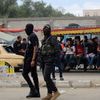 Personel pasukan keamanan internal yang mengabdi ke kelompok Hamas saat berpatroli di kamp pengungsi Nuseirat, Gaza tengah, 12 Oktober 2025.Mereka melakukan peregangan ringan bersama guru sembari meneriakkan slogan, “Hidup Palestina!”