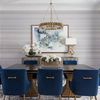Desainer Christina Sullivan Roughan, Kepala Desain Interior Roughan, di Weston, Connecticut, menggunakan penutup dinding sutra dari Phillip Jeffries untuk ruang makan berwarna hitam.