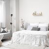 Sedangkan untuk memberikan kesan hangat, tambahkan aksen krem dan letakkan sepasang lampu di samping tempat tidur.