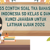 Sebanyak 30 contoh soal TKA Bahasa Indonesia SD kelas 6 ini disusun berdasarkan materi membaca teks informasi, cerpen, makna kata, hingga simpulan isi bacaan.