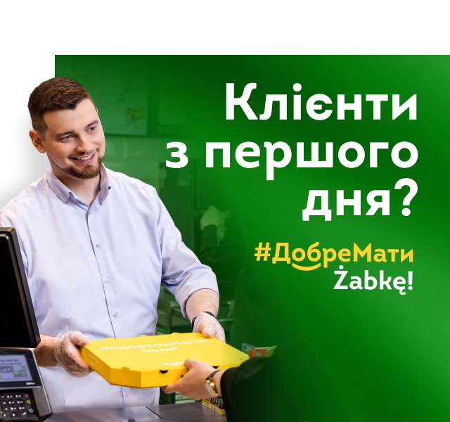 *85,42% франчайзі отримали виторг у розмірі 30 000 злотих або більше в період з 1.1.2025 до 31.12.2025 р. Виторг залежить від досягнутого франчайзі обороту від продажу товарів (маржі), кількості або вартості укладених договорів на надання торговельних послуг та нарахованих знижок. Дізнайся більше на www.zabka.pl/franczyza