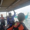 Insiden ini terjadi saat perahu hendak kembali ke darat karena kondisi gelombang yang tinggi.